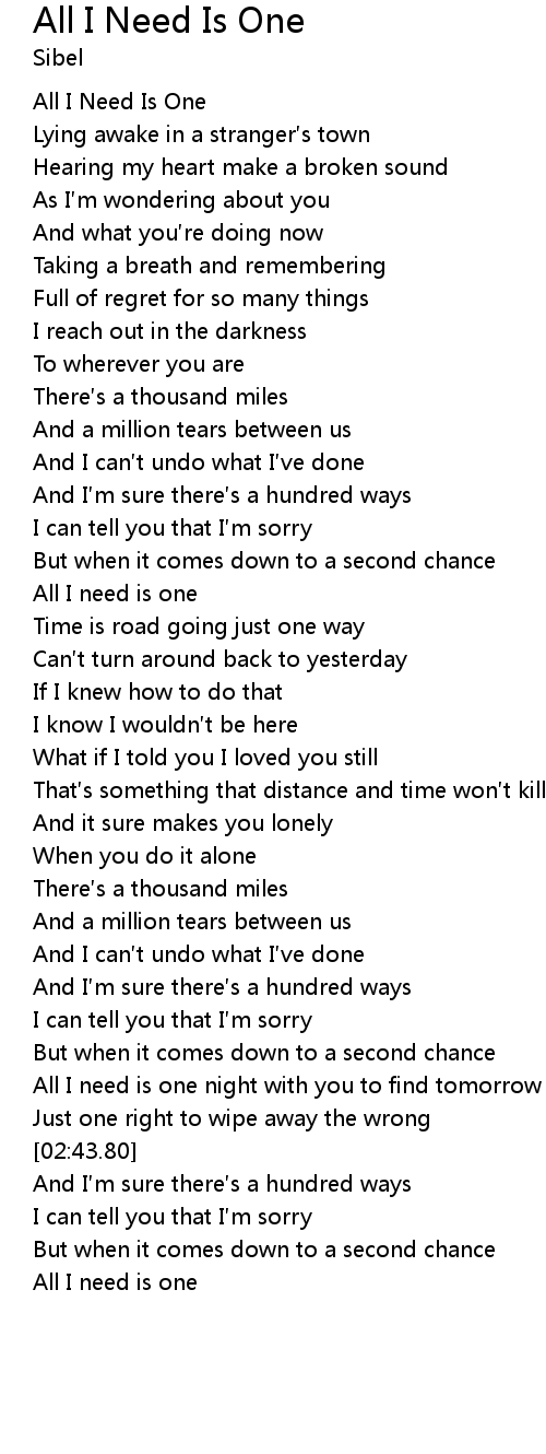 | [02:26.84] | All I need is one night with you to find tomorrow |