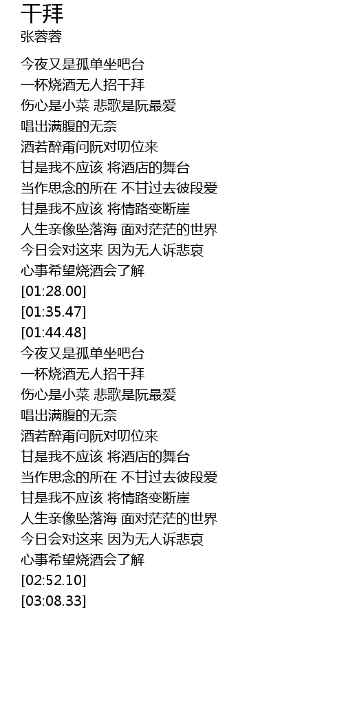 | [01:54.35] | yi bei shao jiu wu ren zhao gan bai |