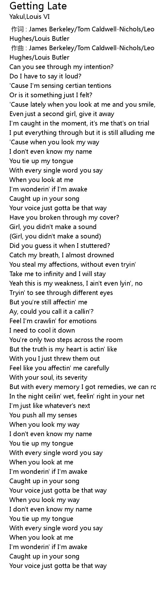 | [00:00.00] | 作词 : James Berkeley/Tom Caldwell-Nichols/Leo Utton/Sam Hughes/Louis Butler |
