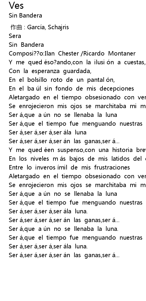 | [01:16.79] | Ser a, ser a, ser a, ser a n las ganas, ser a... |
