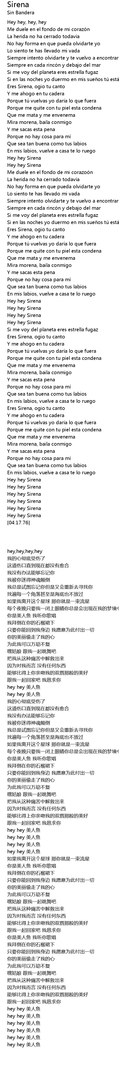 | [04:17.01] | hey hey 美人鱼 |