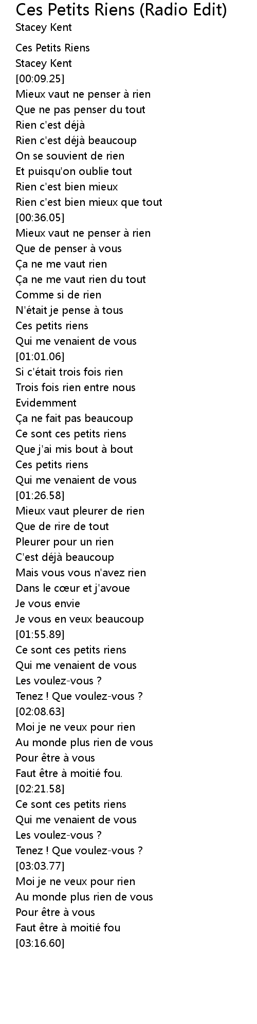 | [02:52.95] | Ce sont ces petits riens |