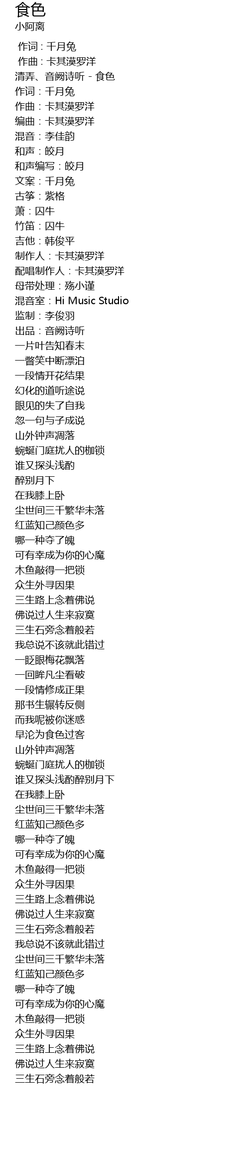 | [00:03.395] | 清弄、音阙诗听 - 食色 |