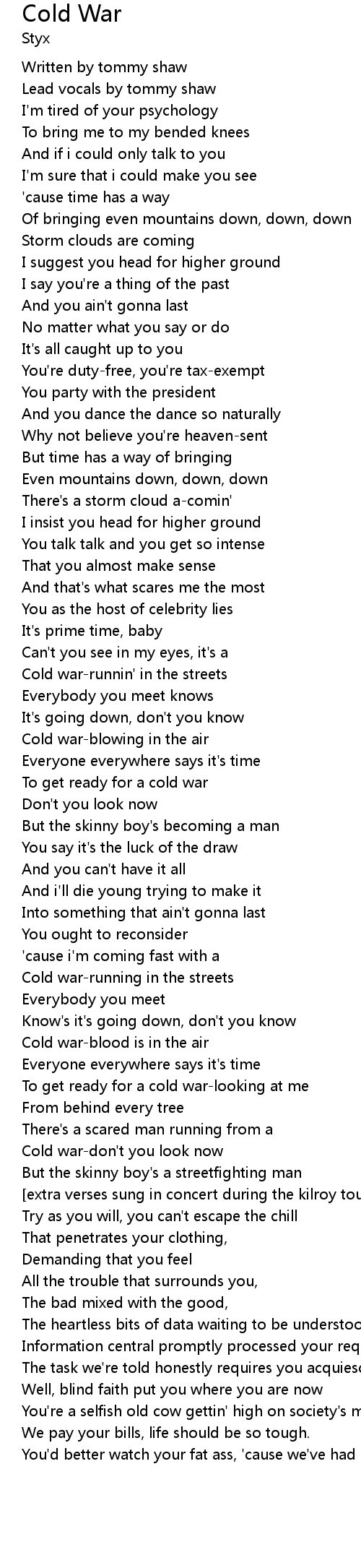 Cold war-runnin' in the streets |