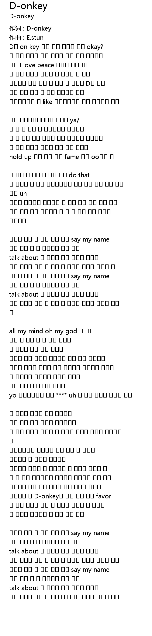 D에 on key 근데 그냥 불러줘 동키 okay? |