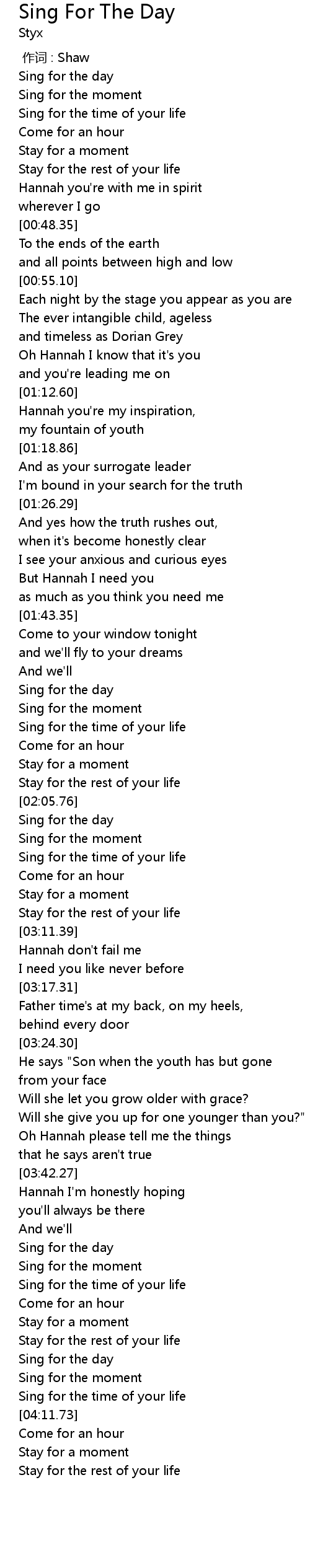 | [04:05.18] | Sing for the day |