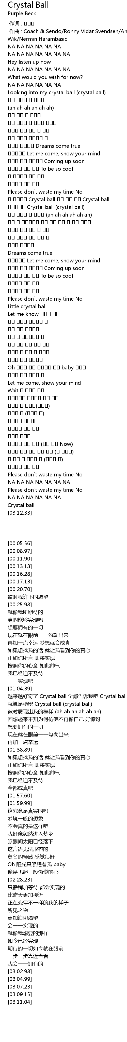 | [01:06.44] | 越来越好奇了 Crystal ball 全都告诉我吧 Crystal ball |
