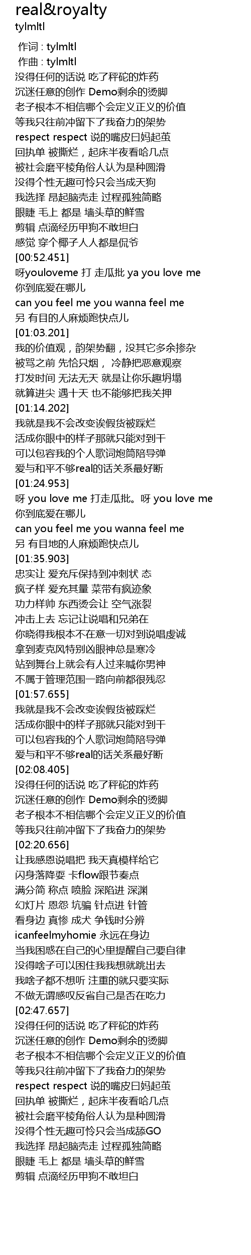 | [03:05.159] | respect respect 说的嘴皮曰妈起茧 |
