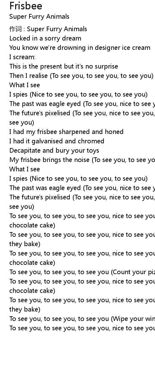 | My frisbee brings the noise To see you, to see you, to see you | |