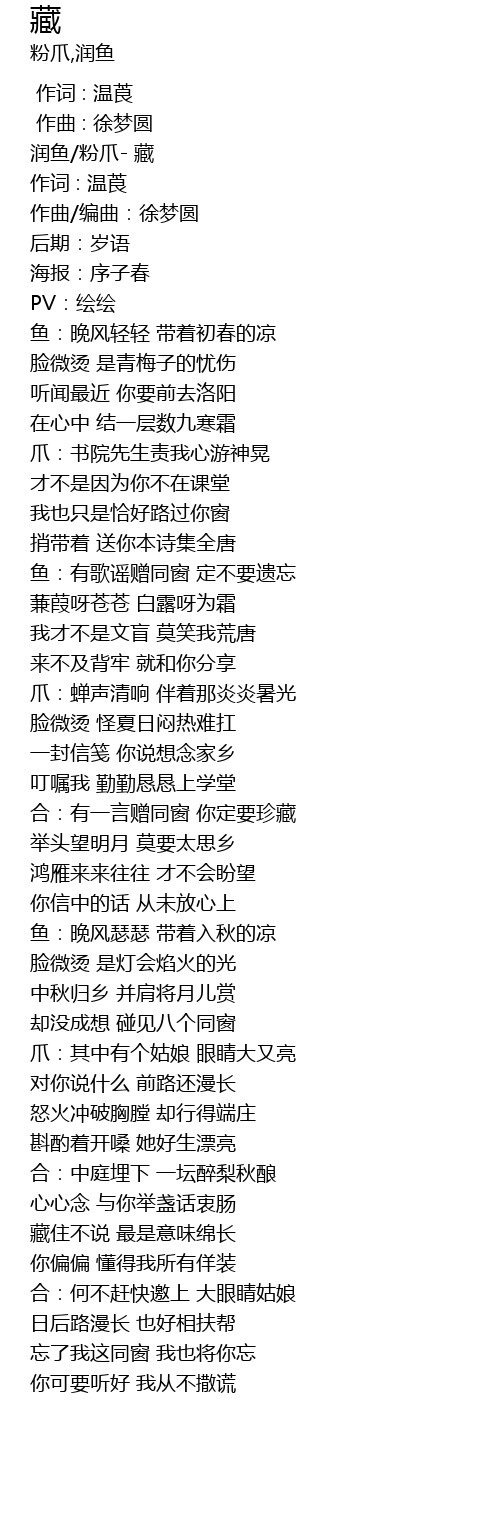 | [00:00.02] | 润鱼/粉爪- 藏 |