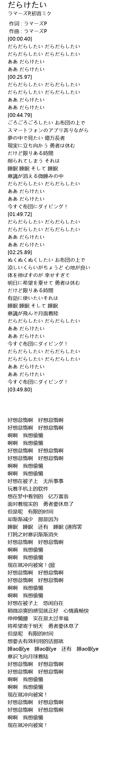 | [03:40.46] | 好想怠惰啊 好想怠惰啊 |