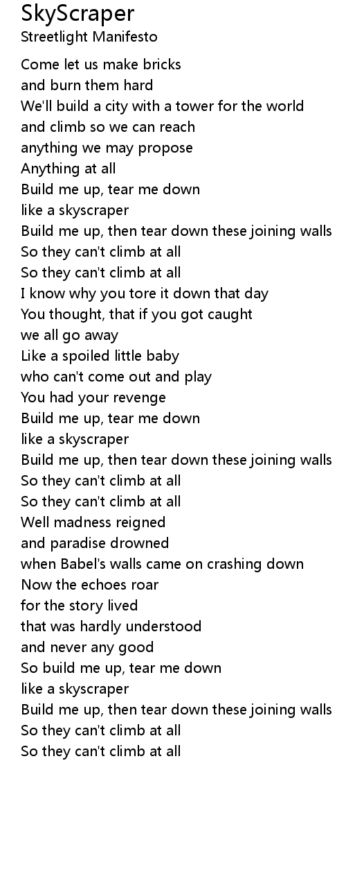 Build me up, then tear down these joining walls |