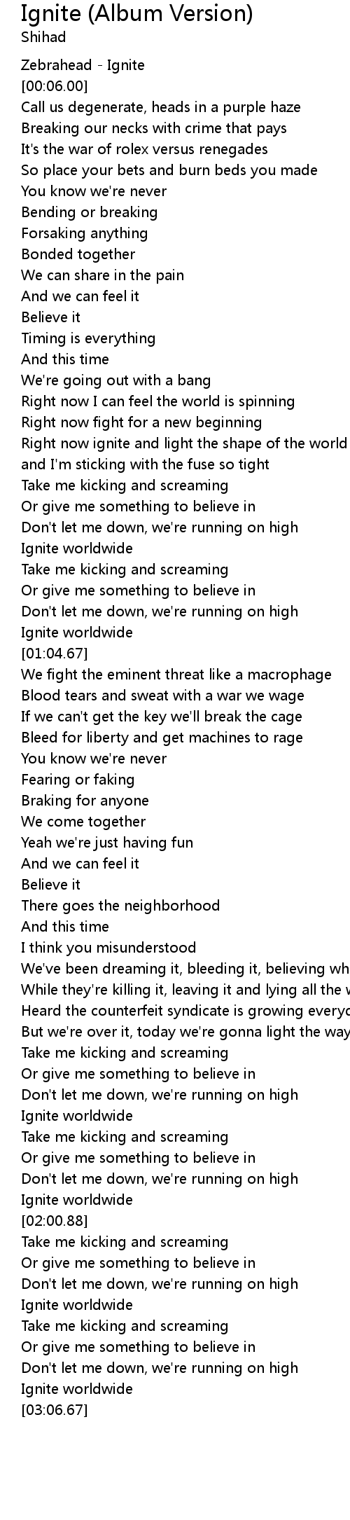 | [03:03.08] | Ignite worldwide |