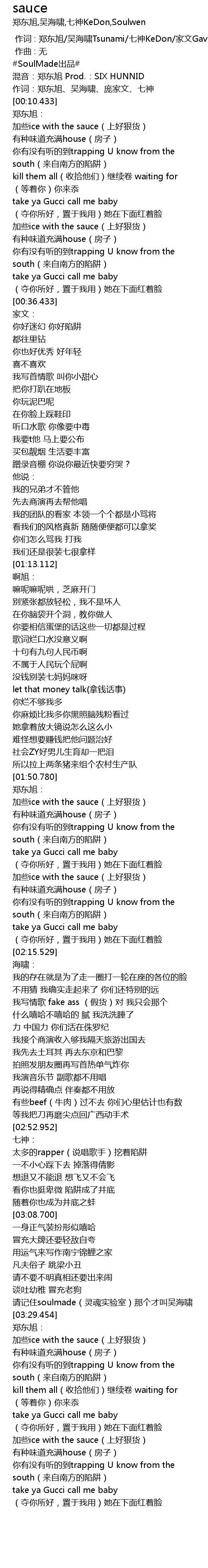 | [03:30.201] | 加些ice with the sauce(上好狠货) |