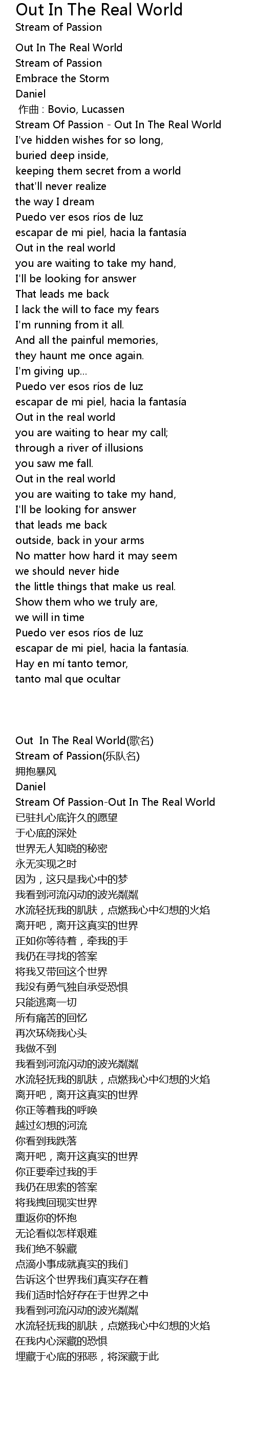 | [00:00.00] | Stream Of Passion - Out In The Real World |