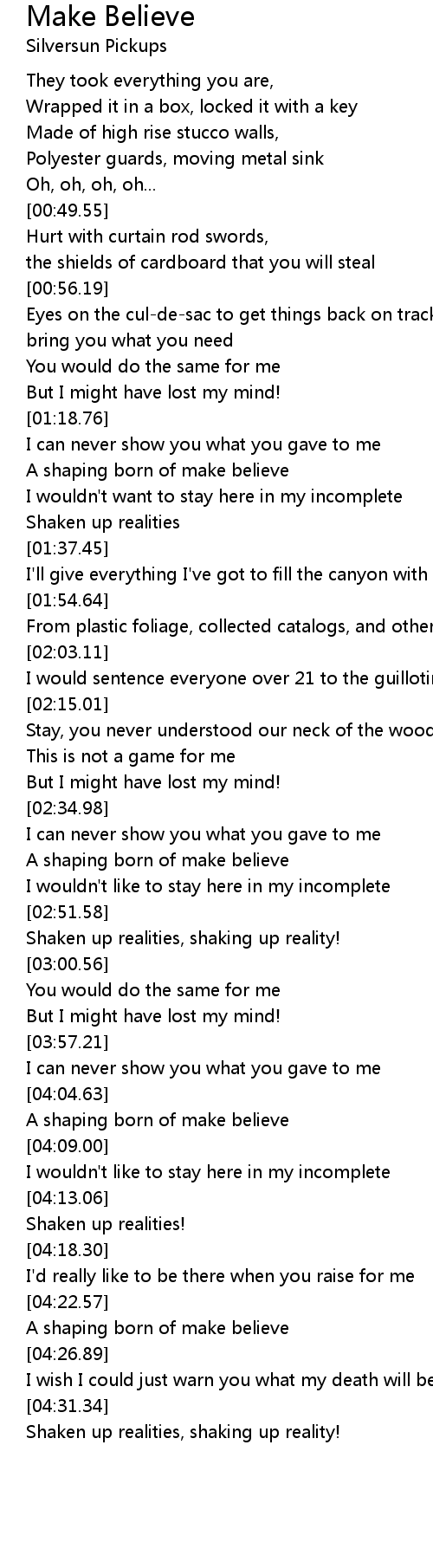 | [04:32.09] | Shaken up realities, shaking up reality! |