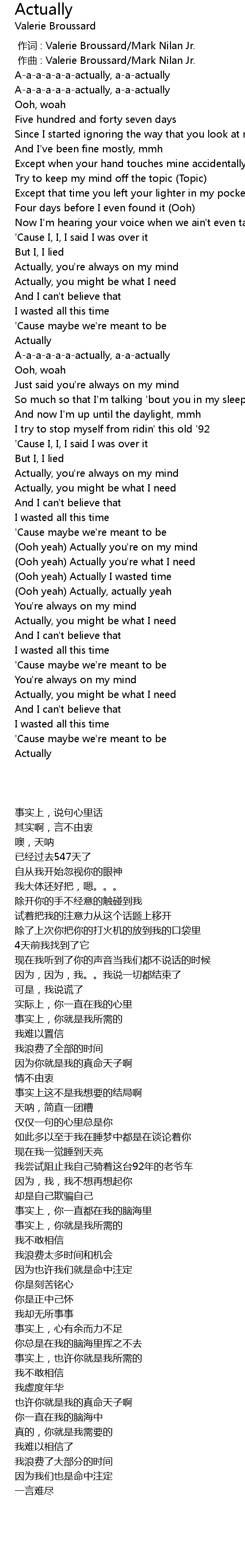 | 歌曲 | Actually |