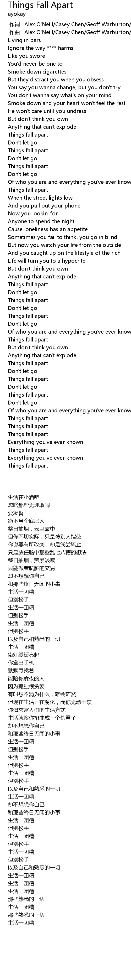 | [00:00.00] | 作词 : Alex O'Neill/Casey Chen/Geoff Warburton/Sam Fischer |