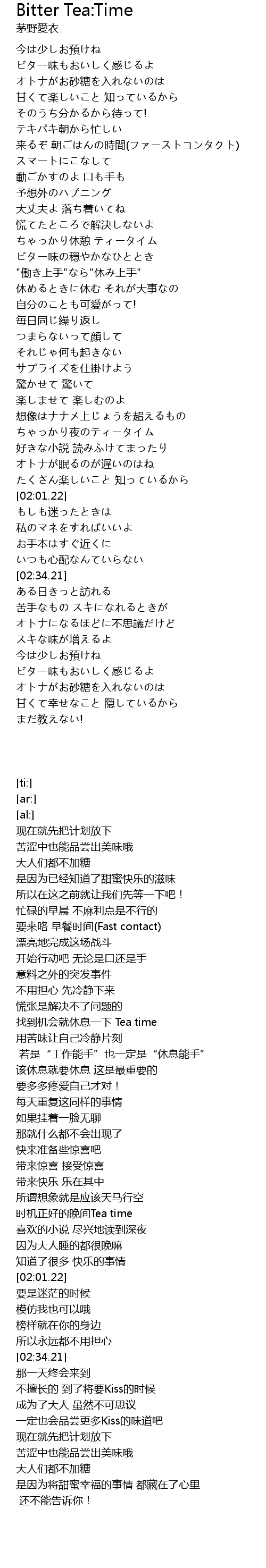 | [02:59.81] | ビター味もおいしく感じるよ |