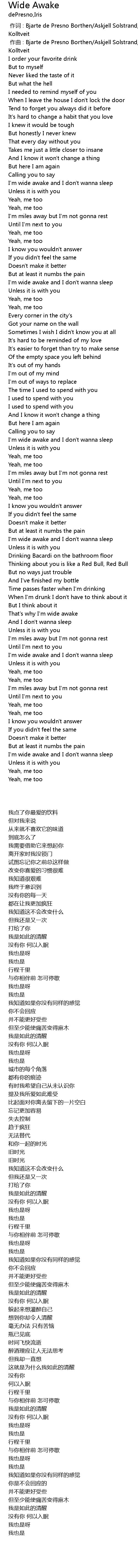 | [00:52.12] | I'm wide awake and I don't wanna sleep |
