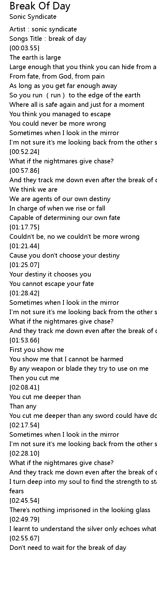 | [02:39.98] | I turn deep into my soul to find the strength to stand against my fears |