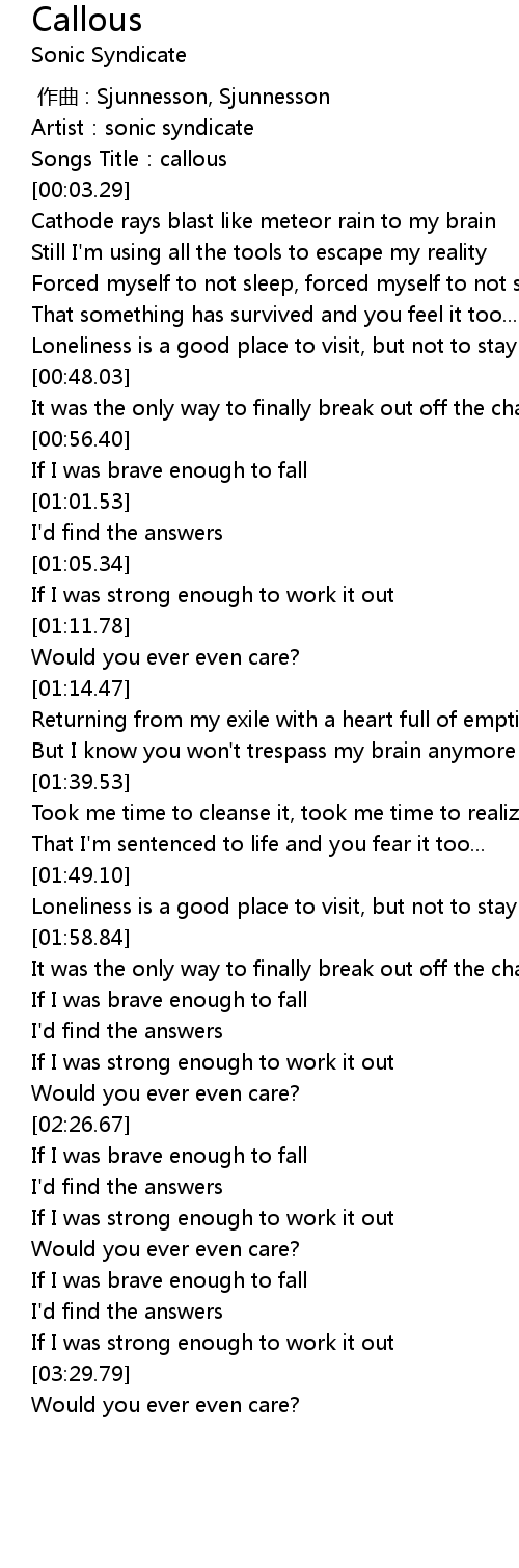 | [00:01.97] | Songs Title: callous |