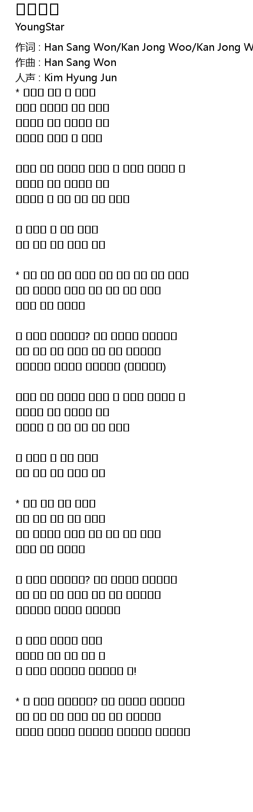 作词 : Han Sang Won/Kan Jong Woo/Kan Jong Wook