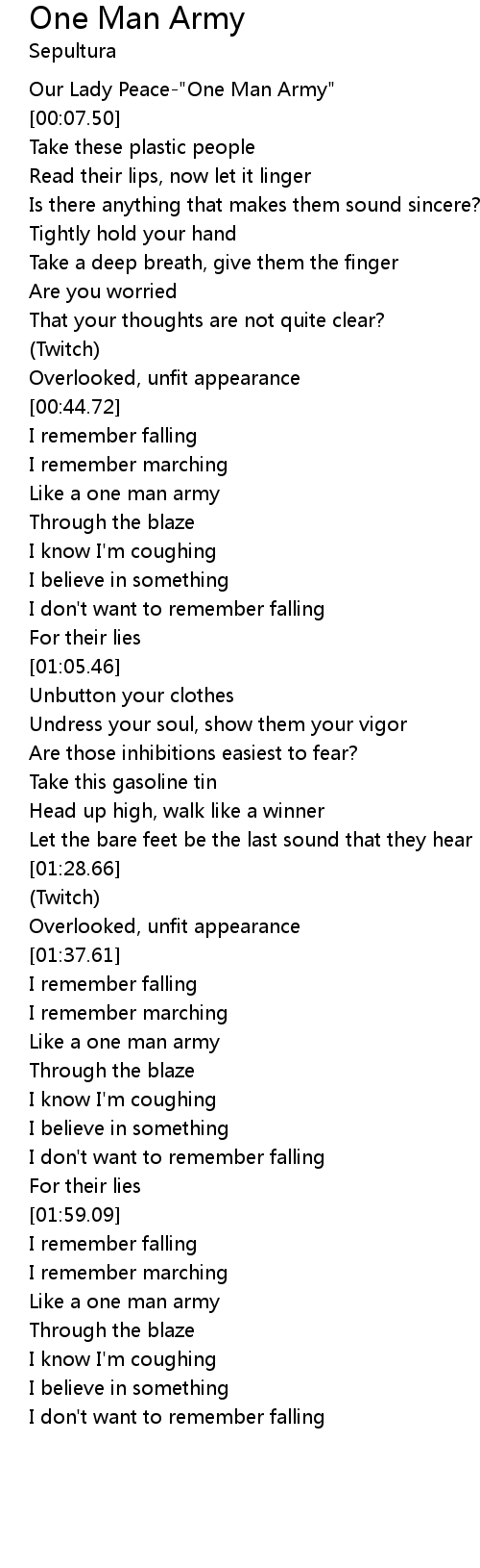 | [00:00.03] | Our Lady Peace-"One Man Army" |