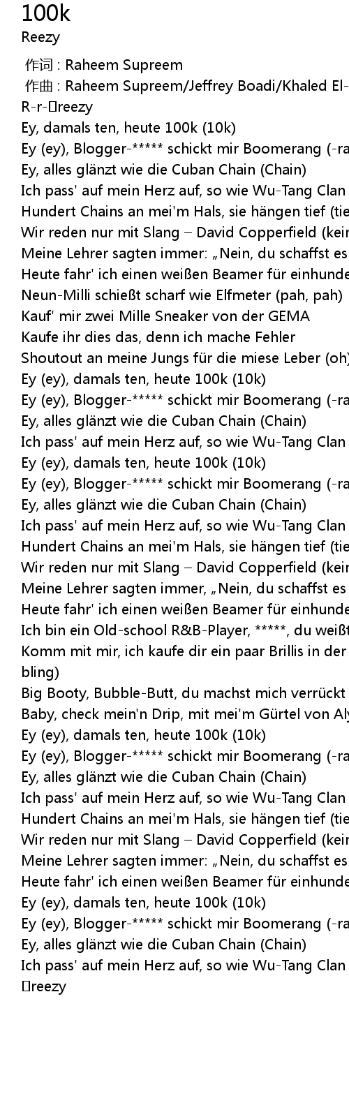 | [01:50.37] | Ey (ey), damals ten, heute 100k (10k) |