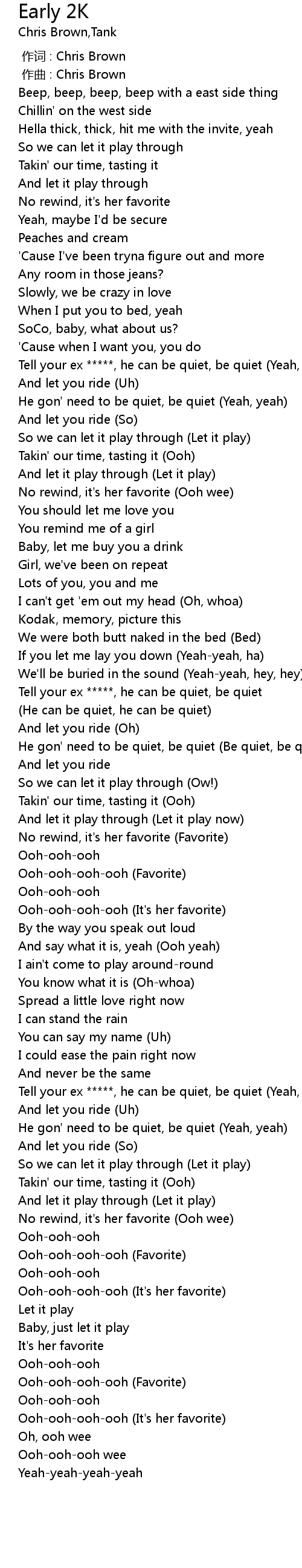 | [00:00.00] | zuò cí : Chris Brown |