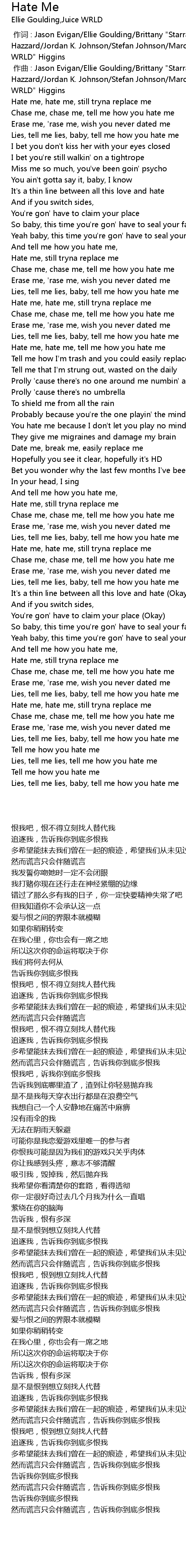| 歌曲 | Hate Me |