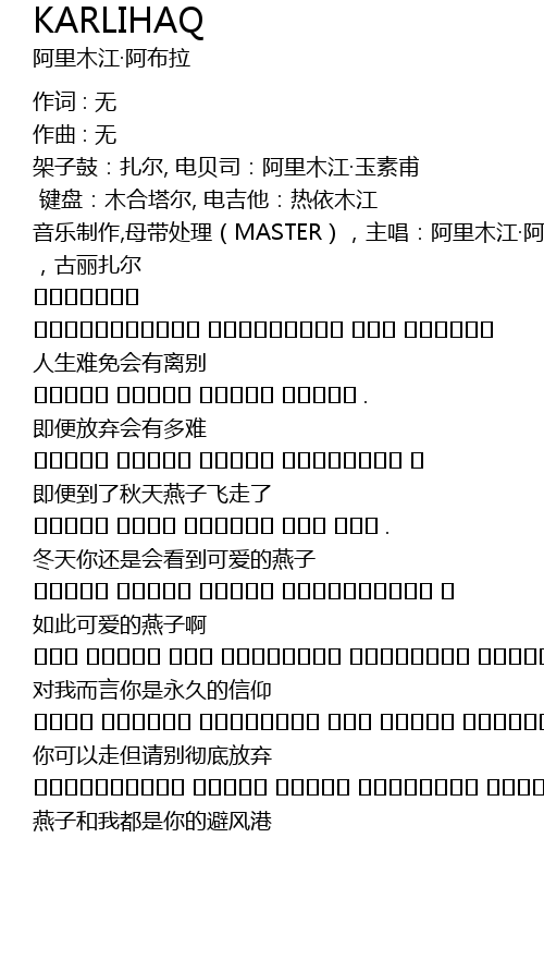 | 音乐制作,母带处理(MASTER),主唱:阿里木江·阿布拉 ,古丽扎尔 | |
