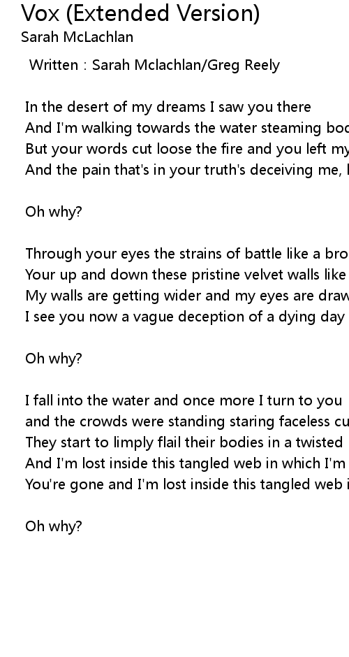 | Written: Sarah Mclachlan Greg Reely | |