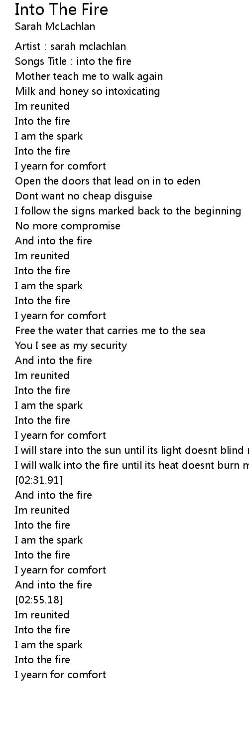 | [03:02.64] | Into the fire |