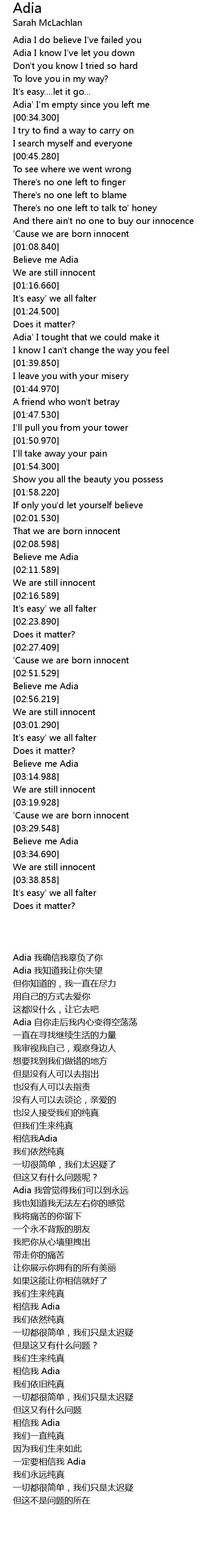 | [00:01.290] | Adia 我确信我辜负了你 |