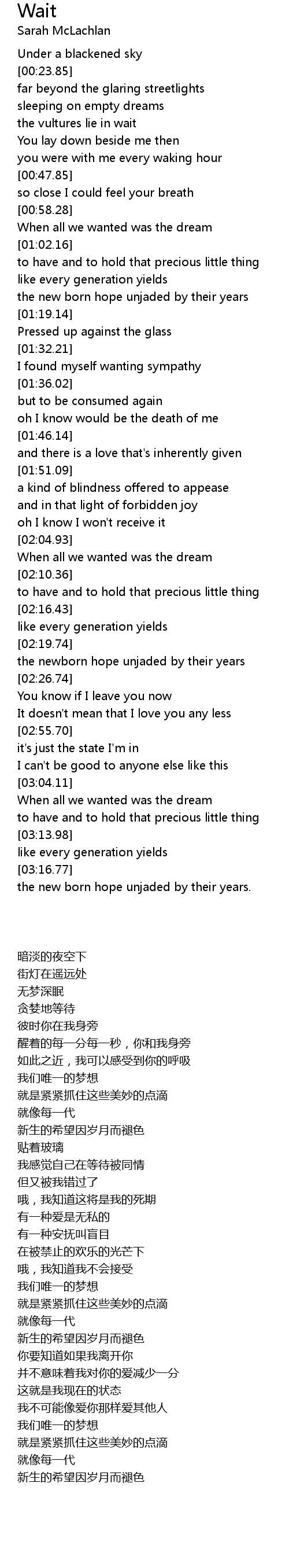Wait 歌词
