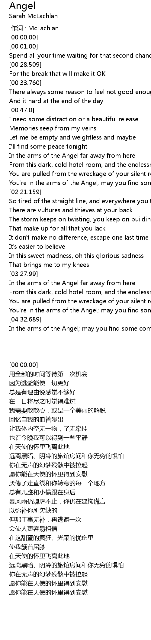 | [04:35.379] | In the arms of the Angel; may you find some comfort here |