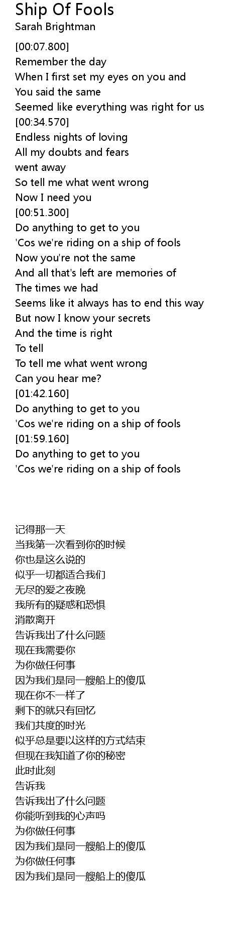 'Cos we're riding on a ship of fools |