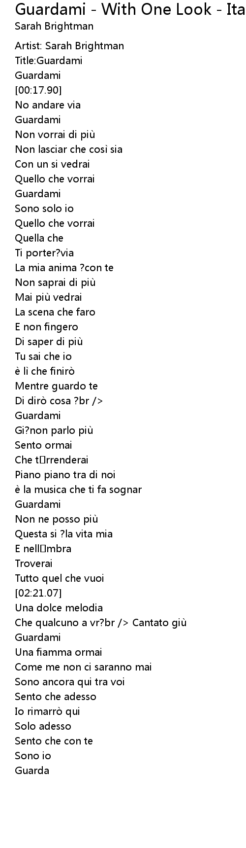 | [02:39.45] | Che qualcuno a vr?br /> Cantato giù |