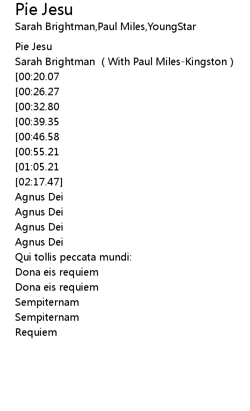 | [01:16.87][00:20.07] | Pie Jesu |