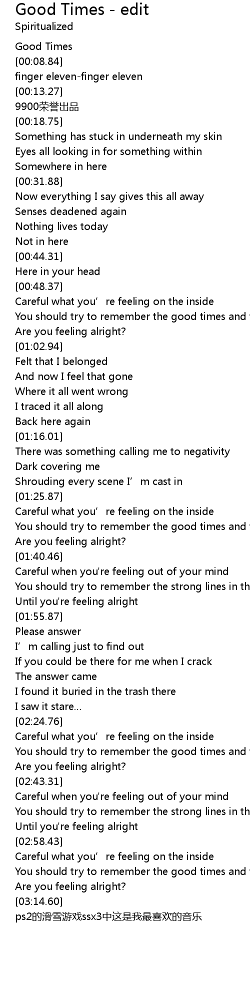 | [02:45.01] | Careful when you're feeling out of your mind |