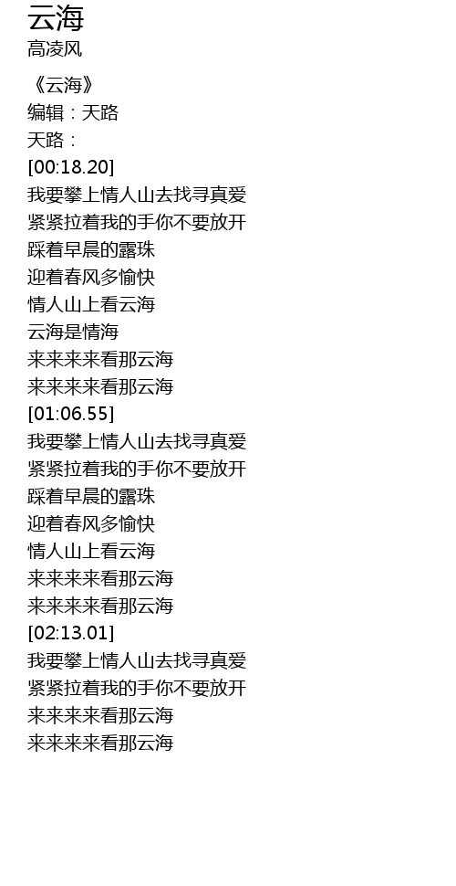 | [01:56.97] | lái lái lái lái kàn nà yún hǎi |