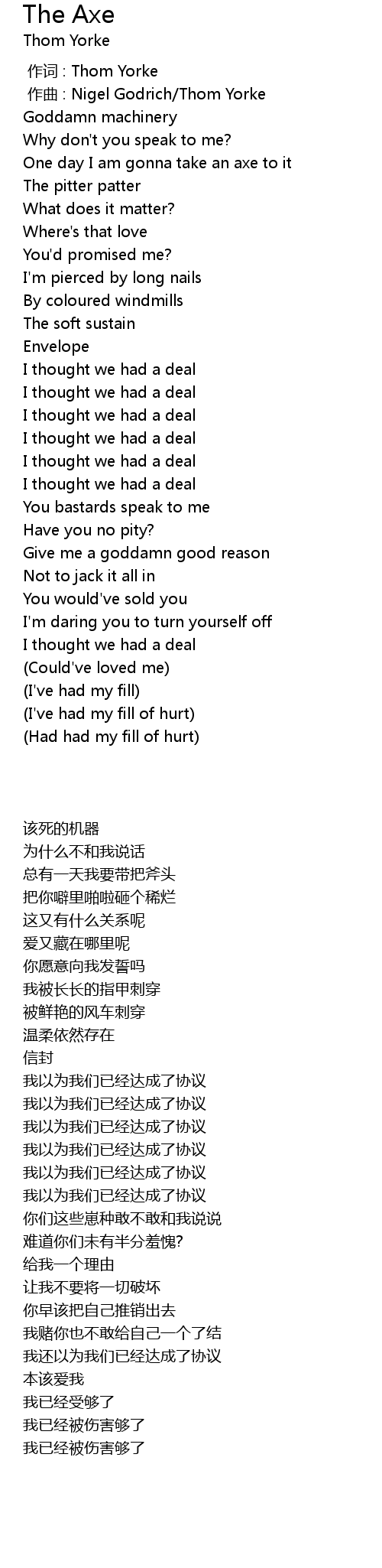 | [00:00.000] | zuo ci : Thom Yorke |