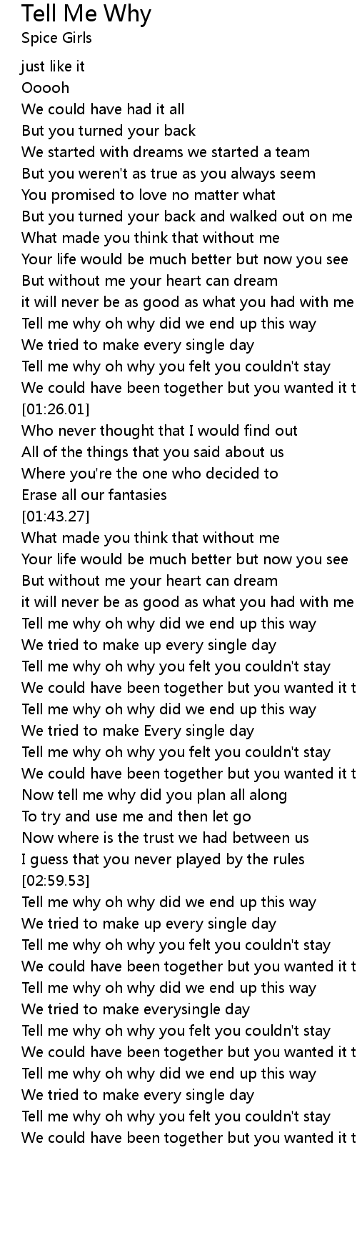 | [02:02.51] | Tell me why oh why did we end up this way |