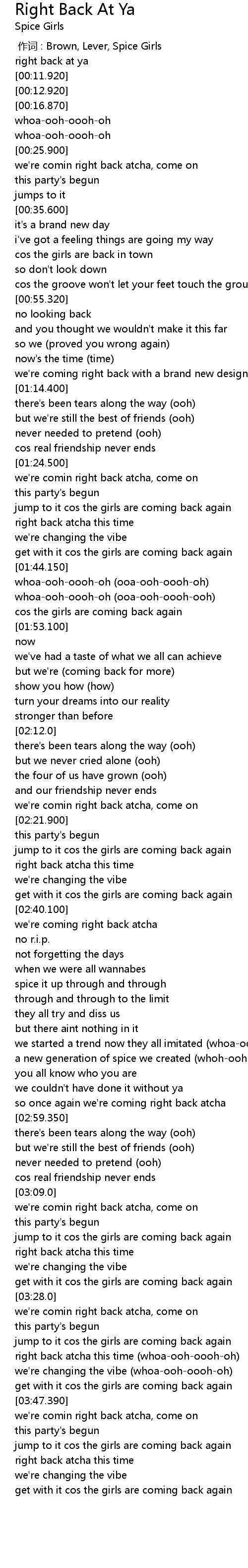 | [00:00.00] | 作词 : Brown, Lever, Spice Girls |