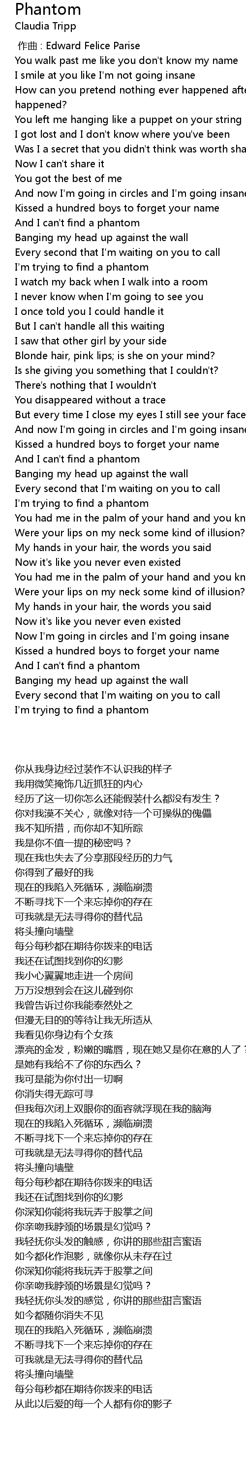 | [01:53.000] | 我还在试图找到你的幻影 |