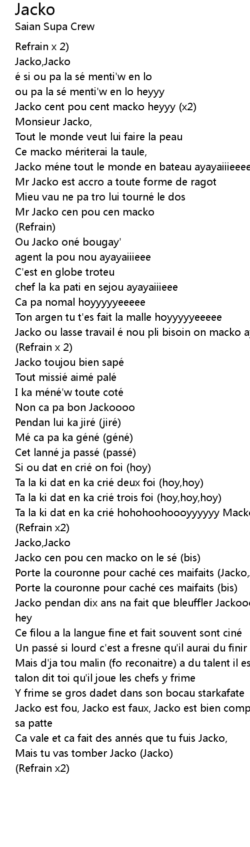| Ca vale et ca fait des anne s que tu fuis Jacko, | |