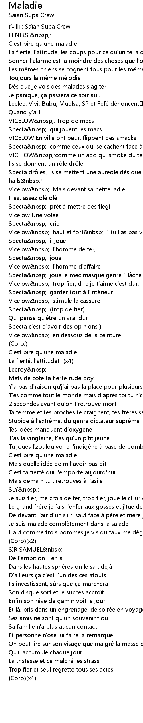 | Ta femme et tes proches te craignent, tes fre res se plaignent | |