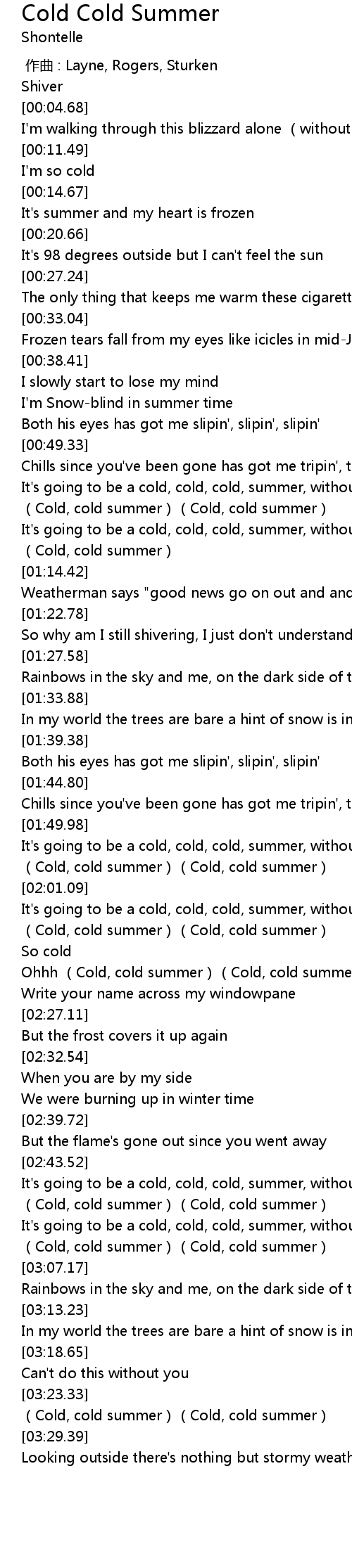 | [03:03.30] | Cold, cold summer Cold, cold summer |