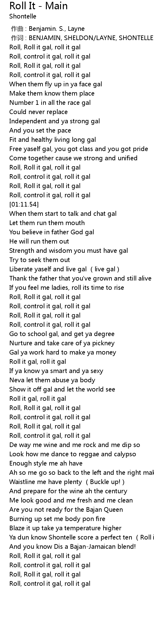 | [01:46.71] | Roll, Roll it gal, roll it gal |